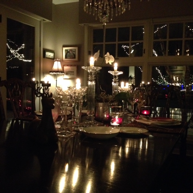 On our 7th day of Christmas…we breathe again. The preparation of our family Christmas dinner is behind… Mom is back safe at her home. A special time had by all. Tonight, a fire is settled in the fireplace…we have just returned from our walk around this little lake that we live on. The Christmas light displays are spectacular this year. Tonight we celebrate one of our favorite traditions. “Our” Christmas…just the two of us. Each holiday season we take one night…we share gifts, enjoy eggnog with a touch of bourbon… and create a lovely holiday dinner. We discuss the years’ treasured moments and acknowledge all of the blessings in our lives. We begin to share our dreams of 2014. Tonight we also discuss and begin our preparations…leaving tomorrow continuing our journey northeast.